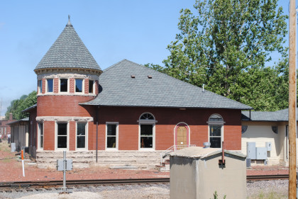 The Railway Express building in Grinnell which houses the local model railroad club.