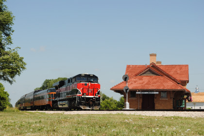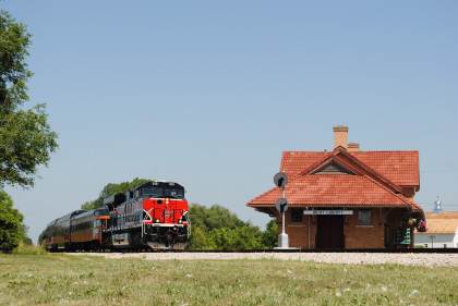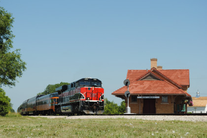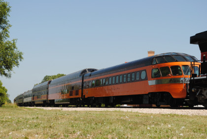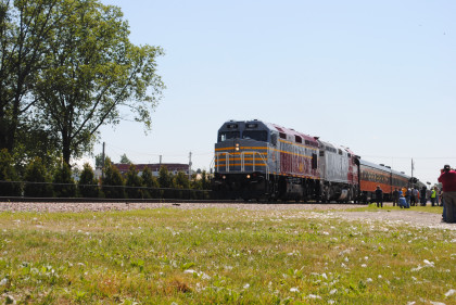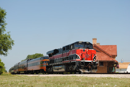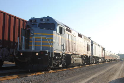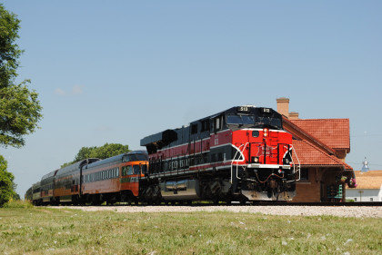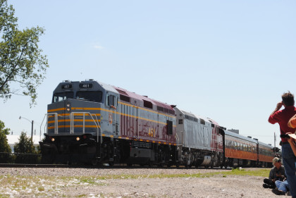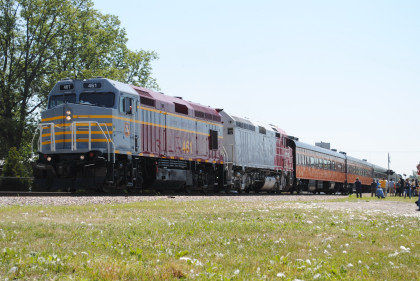 The Train ConsistIowa Northern F40PH 461 and 678, NSRX coach 202 "Wenonah" PPCX 800261, NSRX coach 203 " Nokomis" PPCX 800898, NSRX coach 7616 "Lake Pepin" PPCX 800799, NRHX 142 "Franklin Inn" PPCX 800957, "Braddock Inn" PPCX 800854, New York Central tavern lounge 38 PPCX 800655, High Iron dome 60 "Scenic View" (former Santa Fe 551), NSRX "Super Dome" 53 PPCX 800862 and NRSX Skytop Lounge Observation 186 "Cedar Rapids PPCX 800040.
