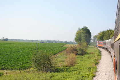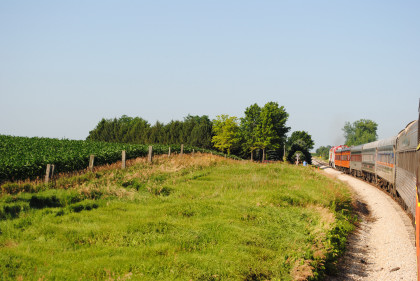 The train curved through East Amana.