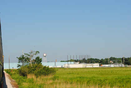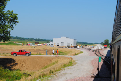 The new Iowa Interstate shops came into view where Iowa Interstate ES44AC 513 was waiting for us to be put on the east end of our train to Rock Island.