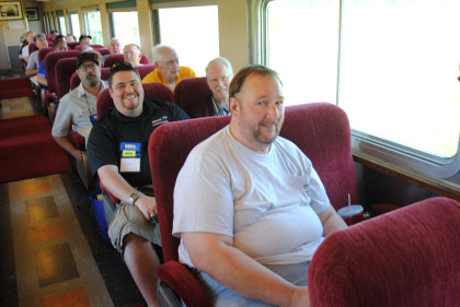 I was up at 5:00 AM and after showering and shaving, I walked over to Casey's for more doughnuts and orange juice. I put the corrections in yesterday's story and posted it before I walked over to the Clarion Hotel and boarded the bus. We had the safety meeting on the bus and then loaded 13 other passengers before we were driven out to our waiting train at Dow-Smith Yard, where I put my stuff in the rear seat of the "Sky View".
