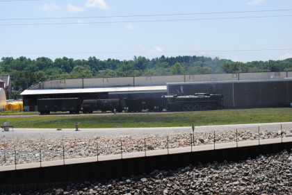 Iowa Interstate 2-10-2 QJ 6988 was waiting to be put on the point of our train in Rock Island. We pulled down into the Iowa Interstate Yard and stopped to couple the steam engine. Once the air test was completed, we re-crossed the Mississippi River and headed to the Lafayette Park for lunch and a photo runby after our meal today.
