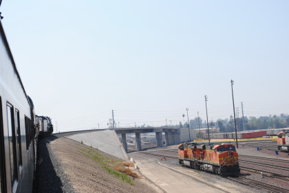 There was a lot less people at the station as well. The train started up and over the Flyover over the BNSF mainline.