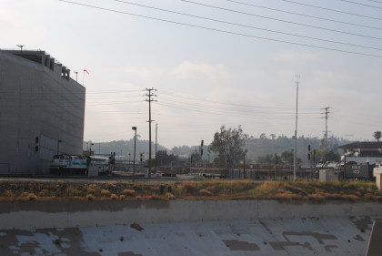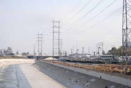 The train crossed the San Gabriel River flyover, followed by the former Southern Pacific mainline.