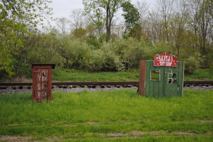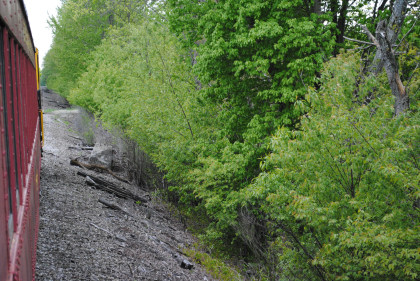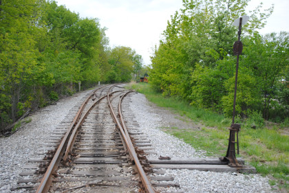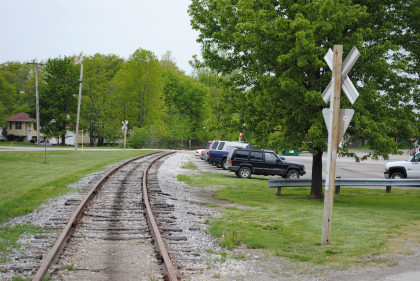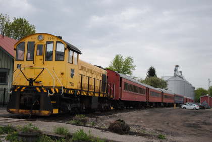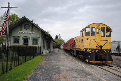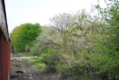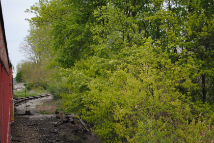 View of the stored engine and caboose. I hoped our train would come all the way up here but if it did not, I would at least photograph the route back to the Jefferson Depot.