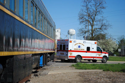 The train had to be moved forward to clear the crossing so this ambulance could get through. We returned to the boarding area and I had two thoughts in my head. Number 1 was I was glad to finally ride this railroad, so thank you Bart Jennings, and number two this train now ranks as the slowest train I have ever been on, beating the old Minnesota Zephyr Dinner Train's three miles an hour.