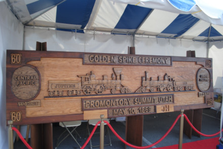 Jackie Hadnot's latest wood carving was on display at the American Passenger Rail Heritage booth. Jackie was on "California Gold" and was interviewed by Huell Howser on the California's Gold Television. His work is also in the Silver Rails Gallery in La Plata. This work will be displayed next Saturday at National Train Day in Los Angeles.