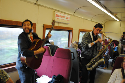 Two musicians encouraged us to sing "Wabash Cannonball" and "Rolling Down the Railroad".