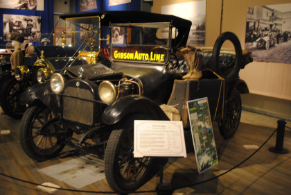 Also notice the many antique auto photos of Alaska motoring history on the museum walls. More than 70 antique photographs depicting the first automobiles to reach Alaska and its mining camps are on display, including antique the Thomas Flyer that reached Valdez during the famed 1908 New York to Paris Race. Along with this impressive display of antique photographs, the museum includes exhibits and antique movie footage that illustrate the extraordinary challenges faced by Alaska's pioneering motorists. Visitors will see examples of how Alaskans modified vehicles to travel on snow, cut firewood, ride the rails and even power a paddlewheel boat down the Yukon River.