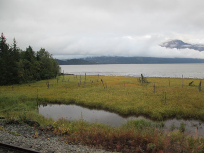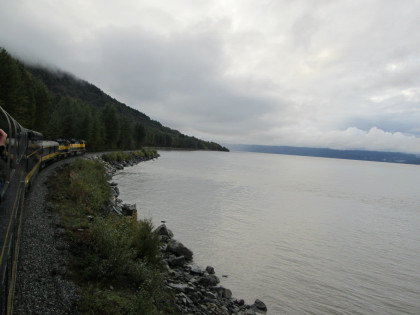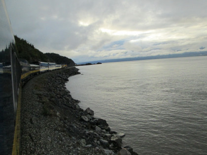 The train running along Turnagain Inlet. I went to the Gold Star car for a few pictures.