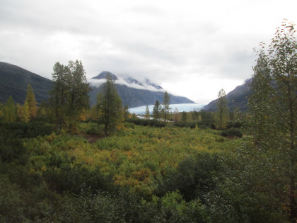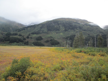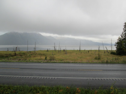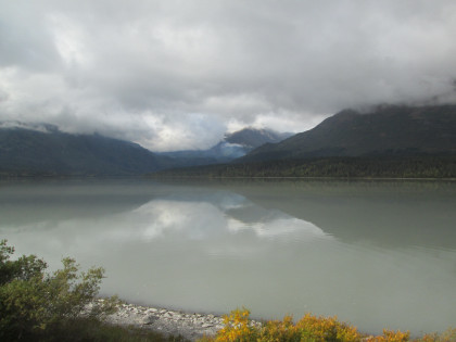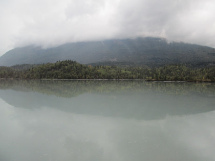 Lower Trail Lake which drains into Kenai Lake. The rain started and stopped before the sun showed for the first time today.