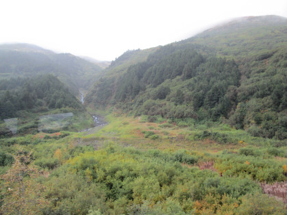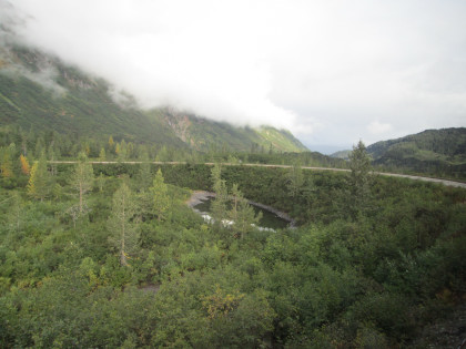 The Grandview Loops. At MP 44.9, it is located in one of a number of narrow passes that the old Iditarod Trail used on its route between Seward and Nome.