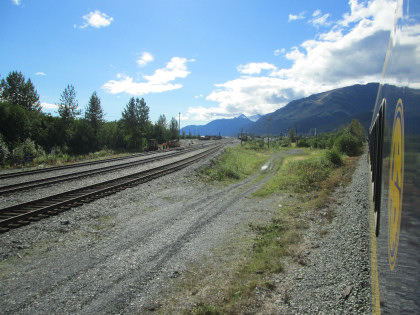 We crossed the valley to get to the approach to Moose Pass then went into the siding at Spencer to meet a northbound coal train there. I walked back to the rear of the "Aurora" for some pictures.