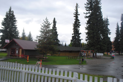 Chena Hotel - This building has an interesting history dating to some of the earliest days of Fairbanks. The Palace Hotel originally stood near the corner of Cushman and Fourth Avenue. The name of the hotel was changed to the "Palace Hotel and Bathhouse" when bathing facilities were added and opened to serve local miners. The hotel was apparently never considered to be the best in town as it stood at the edge of the "red-light district", a row of small cabins on Fourth Avenue between Cushman and Barnette in which prostitution was tolerated behind a high protective fence. In 1906, fire destroyed most of the downtown buildings but the hotel survived in nearly its original condition. In 1957, the hotel was renamed the Chena Hotel. With changes downtown, the building was moved to the park in 1967 and restored.