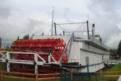 S.S. NenanaThis sternwheeler was launched at Nenana, Alaska in May 1933 and operated on the Yukon and Chena Rivers as a towboat, mainly carrying cargo, but also passengers until 1952. The Nenana is 237 feet long, 43 feet wide, has a draw of just six inches and once was rated at 1,000 gross register tons. Like many of the Alaska riverboats, the S.S. Nenana was built to serve as a packet boat - carrying passengers, freight and mail at the same time. The Nenana had accommodations for 48 passengers and 300 tons of freight. She also pushed as many as six barges loaded with merchandise. Reportedly, the S.S. Nenana is the second largest wooden vessel in the world today. Reports state that the five-deck ship "made the 774-mile voyage from Nenana to Marshall, Alaska, every two weeks during her five-month season, traveling 24 hours a day". In the early fall or in poor weather when it was dark, a huge searchlight mounted on the steamship made forward progress possible. Her boilers were wood-fired. The top speed was 17 miles per hour downstream and ten upstream. When under full steam, the boiler consumed a cord-and-a-half of firewood every hour. About 200 cords of wood were carried on the cargo deck and 16 cords piled on the bow for ballast. In 1948, the boilers were converted to oil.