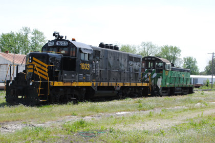 Maumee and Western Railroad GP16 1603, ex. Pioneer Rail Equipment 1603, exx. CSX 1742, exxx. Seaboard System 4642, nee Seaboard Air Line 1915 built by Electro-Motive Division in 1955. The Michigan Southern Railroad (doing business as Napoleon, Defiance & Western Railroad, formerly Maumee & Western) operates between Woodburn, Indiana and Napoleon, Ohio and comprises 58 miles of track. The railroad originally extended to Toledo; portions have been converted to a rail trail. Pioneer Rail Equipment bought Maumee and Western in 2012.