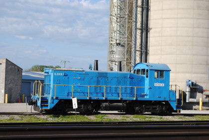 Independent Locomotive Service SW1200 9, nee St. Louis-Southwestern 1064, built by Electro-Motive Division in 1964 at the grain elevator. I drove west to Indiana and the Amtrak station in Waterloo.