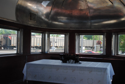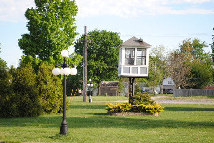 The park next to the depot includes the Baltimore and Ohio gate tower which used to be on the west side of Randolph Street between main tracks 1 and 2, eastbound and westbound. Twenty-four hours a day, the gate keeper raised and lowered the gates across Randolph as trains were made up, as they moved back and forth in the yards and as they passed through town.