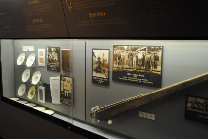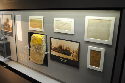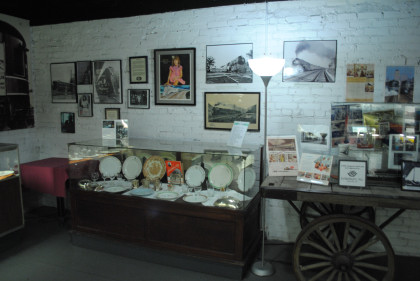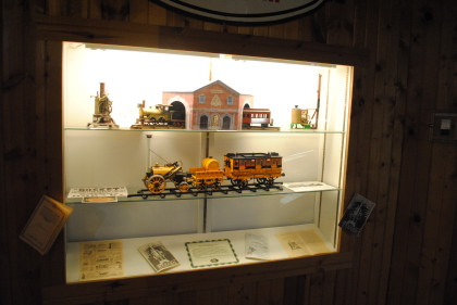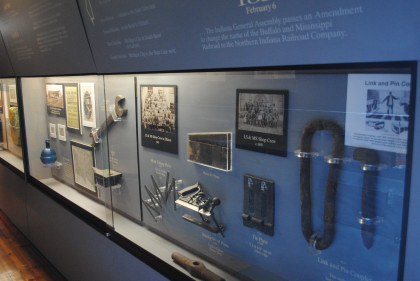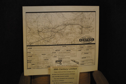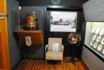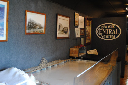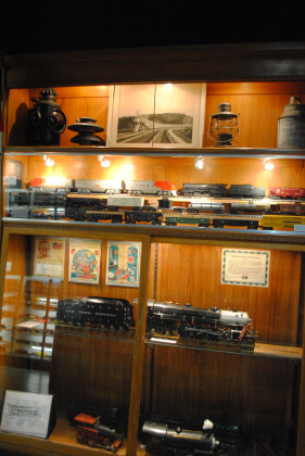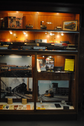 Memorabilia and artifacts. The lit case in the first photograph contain the Stanley and Danielle Bell model train collection, donated to the National New York Central Museum and the City of Elkhart in June 2010.