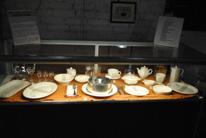 New York Central dining car china. Each piece was numbered and there is a explanatory list on top of the cabinet.