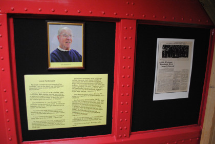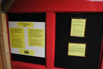 A display commemorating the 1926 Cardinal's Train. "The Peace of Christ in the Reign of Christ" was the theme of the 28th International Eucharistic Congress, and for the first time ever the Congress was being held in the United States. Coming from Italy, the Pope's personal representative would travel to Chicago by rail from the port in New York City. Chicago Archbishop George William Mundelein was about to put his town, and the United States, on the map -- at least with the Roman Catholic Church. It was a tremendous coup for the Chicago Archdiocese to be chosen to host the event, and over one million people attended from June 20-24, 1926.