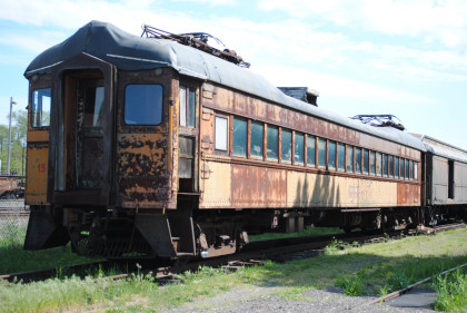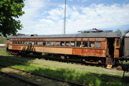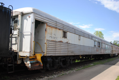 Illinois Central coach 3664 built by Pullman in 1918, later modernized and became Illinois Central 2694. Now lettered New York Central "St. Joseph River" and houses the museum's archives.