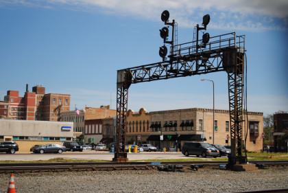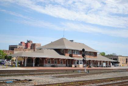 I drove via a detour to my next destination in town and was amused to see the same local here then found a parking lot next to where the Elkhart & Western motive power was kept when not in use. This railway is owned by Patriot Rail and is a Class III shortline operating three unconnected lines in northern Indiana. The first, the Elkhart Branch, is in and around the city of Elkhart in Elkhart County, the second, the Argos Branch, radiates from Argos in Marshall County and the third, the Monon Branch, operating from Monon to Monticello in White County.