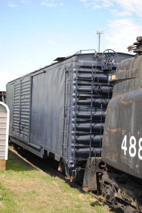 New York Central idler car 504472 for crane X-13 built by Industrial Brownhoist in 1949. It was the first of four oil fired, self propelled steam cranes built by the company, and was based in Selkirk, New York then donated by Conrail in 1997.