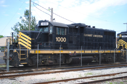 Elkhart & Western GP10 1000, ex. Pioneer Rail Equipment 1000, exx. Illinois Central Gulf 8465, exxx. Illinois Central GP10 8465, exxx. Burlington Northern GP7 1522, nee Great Northern GP7 622, built by Electro-Motive Division in 1950.