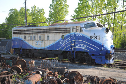 Michigan Air Line Railway Company FP7A 1306 2011, ex. COE Rail Excursion Train 1306 2011, exx. AMT (Agence Metropolitaine de Transport) 1306 2002, exxx. STCUM (Société de transport de la communauté urbaine de Montreal) 1306 1997, exxxx. Société de transport de la communauté urbaine de Montreal 1306 1985, exxxxx. Canadian Pacific 4070 1982, exxxxxx. Canadian Pacific 1433 1960, nee Canadian Pacific 4040 1955, built by Electro-Motive Division in 1951.