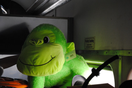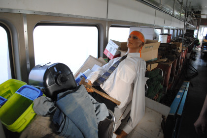 The post office car had a baggage area and I opened the casket to find this lady mannequin. Next we went into the streamlined coach from Cleveland and found a few more items.