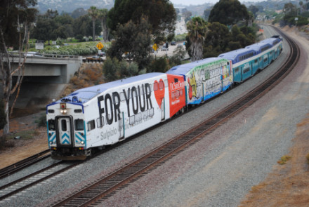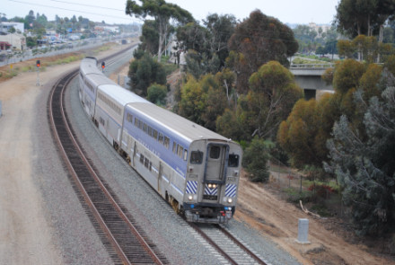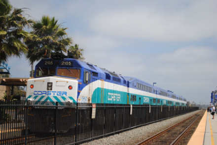 Coaster 644 for San Diego came by first at Claremont Drive.