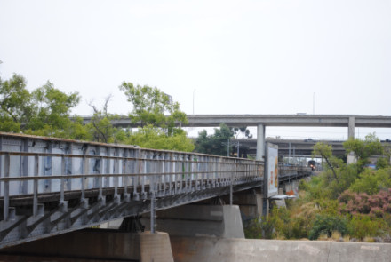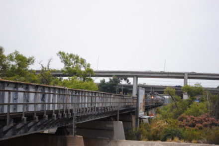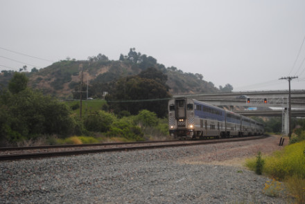 Pacific Surfliner 564 for San Diego came through next. From here we switched photo locations and stopped at one but I did not like it so we moved on and drove along Moreno Boulevard and spotted the bridge over Claremont Boulevard. We turned left on Ingulf Street then left on Denver Street and another left on Claremont Drive where we parked and walked out onto the bridge.