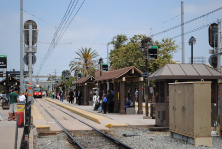 Pacific Surfliner 777 on its way San Luis Obispo. From here we went back to Old Town and AC waited with me until my Coaster 645 for Oceanside arrived. There was plenty of trolley action in Old Town as we waited.