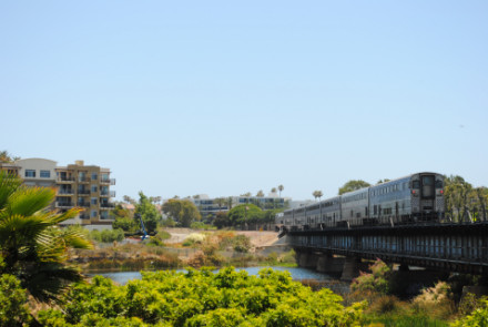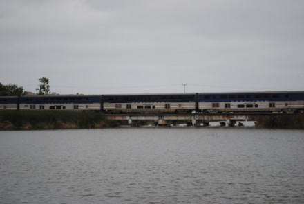 Metrolink 662 crossed the San Luis Rey River north of Oceanside.