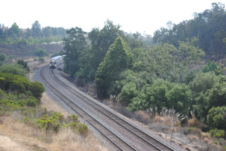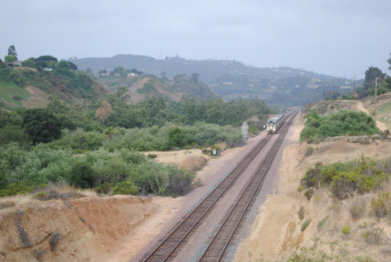 Pacific Surfliner 566 for San Diego below us at Del Mar. From here we drove to Solana Beach and I ws dropped off to go to my next photo location while Bill and Maryann went to find a bathroom at the Solana Beach station.