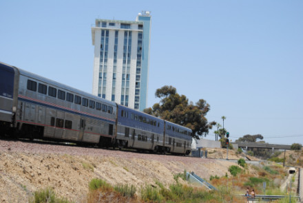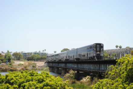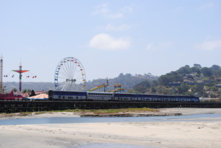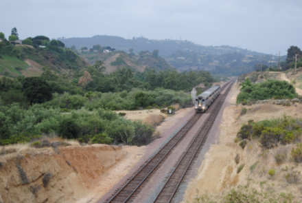 Pacific Surfliner 777 for San Luis Obispo crossed the San Luis Rey River.