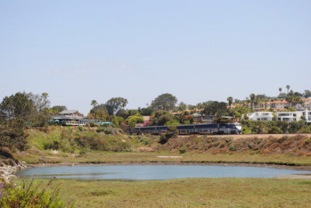 Pacific Surfliner 573 for Los Angeles crossed San Dieguito River north of Del Mar.