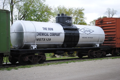 Detroit and Mackinac one dome tank car X-128 built in the 1940's and lettered Dow Chemical Company MSTX 129.