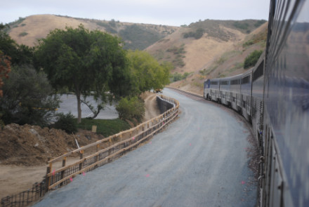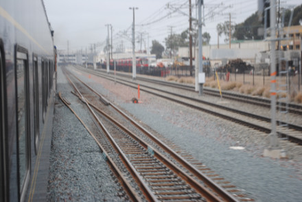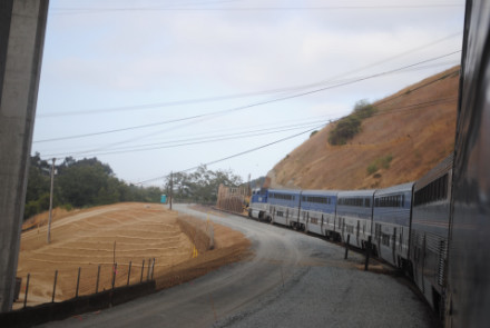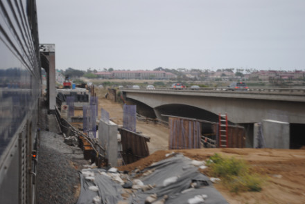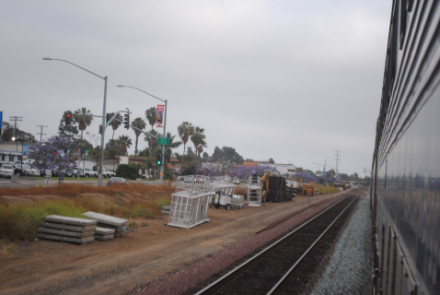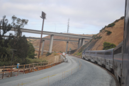The train rolled down Rose Canyon. I returned inside but ventured back outside to see the new crossover project between CP Morena and CP Tecolote.