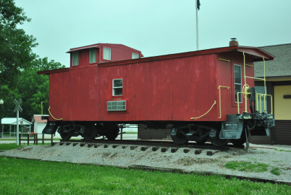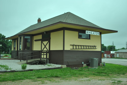 St. Louis-San Francisco caboose 1115 built by the railroad in 1946, which was donated to the Wheaton Historical Society by Heart of the Heartlands Museum members Jane and Bobby Ballard. Bob King, a retired railroad employee and friend of the Heartlands, laid the track for the caboose in the same place the rail line once ran. According to the Monett times article dated December 4, 2009, this was the first railroad car in Wheaton since the train station closed on September 8, 1946.