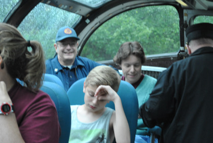 Bob and Elizabeth getting their tickets punched by the conductor.