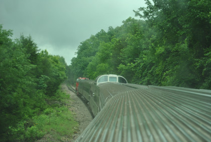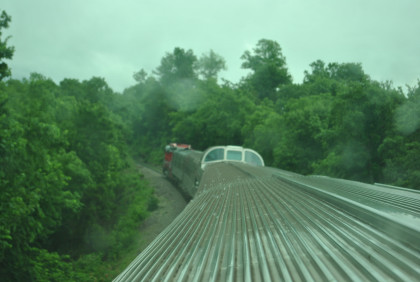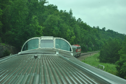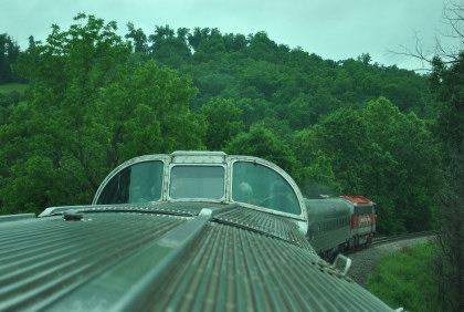 The view looking out of the back of the dome car.