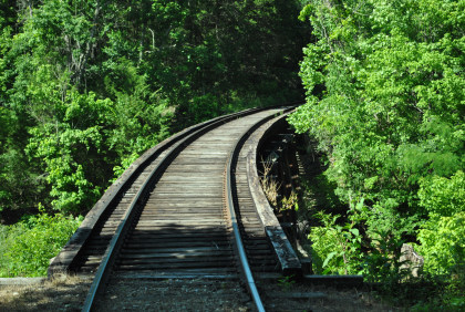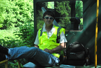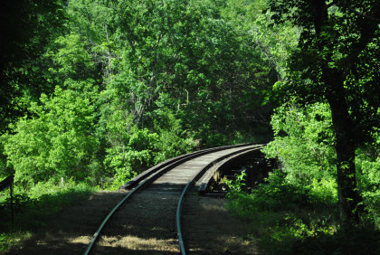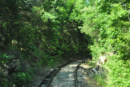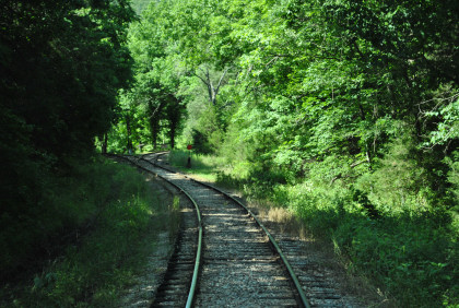 This is as far as we went. I relaxed on the trip back to Eureka Springs and once there, led the way to a photo line I made along the highway looking down at the tracks.