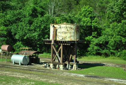 Alabama, Tennessee and Northern Railroad 5 passes beneath the water tower.