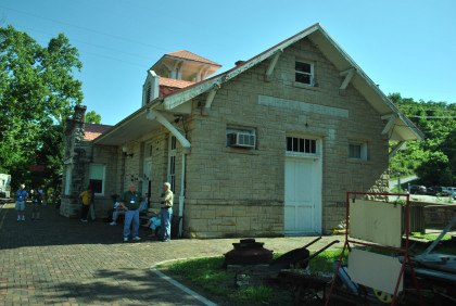 The Eureka Springs & North Arkansas railroad station here. I went to my bus and found I had twenty-four passengers already on it then walked back over to the station and found another twelve passengers ready to head back. Bart said when I had forty I could leave and we left with 43 passengers and made our way back to Springdale.