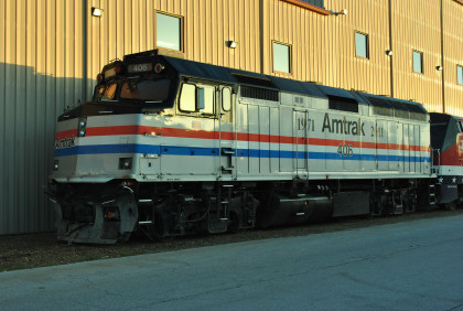What appears to be a locomotive is actually a Non-Powered Control Unit, a former 3,000 horsepower F40PH rebuilt in 2011 without a prime mover, but with the ability to control an adjacent locomotive. Built for Amtrak in July 1988 by EMD, F40 406 was retired in 2001 and stored before being rebuilt by Amtrak's Beech Grove facility in Indiana. Today, 406 provides Head End Power (HEP) to power the onboard lights and HVAC systems, and to allow the train to operate in either direction without having to be turned around.
