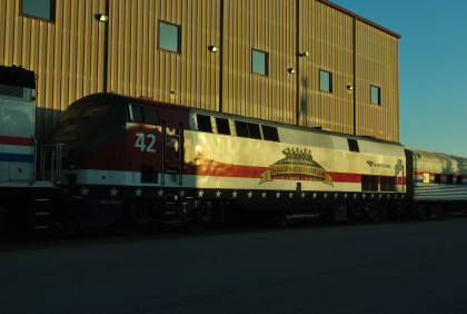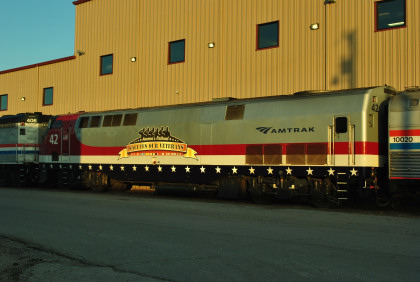 Since the train was dedicated, it has traveled the country, but its appearance at the 2014 NRHS convention is its first showing in Arkansas. According to Amtrak, the "train is led by a diesel-electric locomotive arrayed in an historic Amtrak paint scheme, the Exhibit Train includes three display cars (former baggage cars) that have been renovated and transformed into exhibit space. Information on major events and achievements covering more than four decades of company history are shown. At the end of the train, in a reconfigured Amfleet Cafe car, visitors may browse the gift shop."