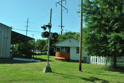 The railroad crossing at the museum.
