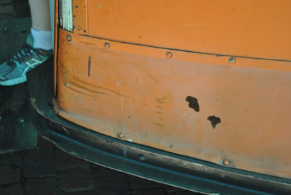 I saw passengers walking back from the trolley and learned that a pickup truck had run into it. We had five NRHS members aboard but thank God no one was hurt. I took names and obtained information about the accident.